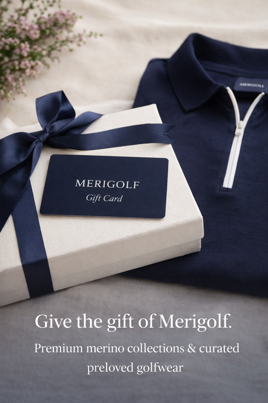 The Merigolf Gift Card lets them choose from our premium merino collections and thoughtfully curated preloved golfwear — beautifully made, breathable pieces designed to bring comfort and confidence to every round. Feel Good. Play Amazing!