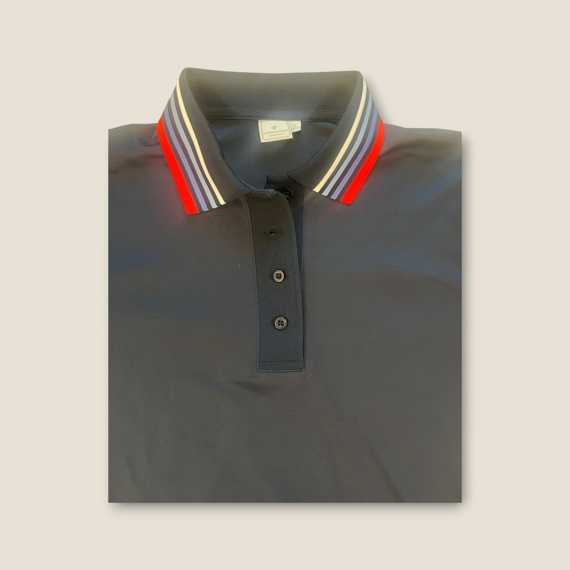 The Cross Stripe Polo is a sporty yet elegant ladies polo with a timeless, classic look. Finished in navy with subtle contrast stripes at the collar, this style adds a refined pop of colour while remaining clean and versatile. Classic polo buttons at the front and small side slits complete the silhouette, offering ease of movement on the course.